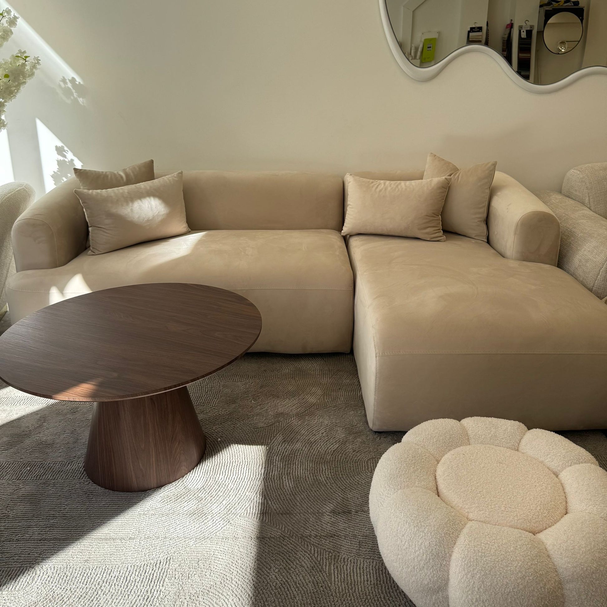 - Revêtement en tissu velours de qualité supérieure : Doux, résistant et facile à entretenir, avec une texture élégante qui s’adapte à tous les styles d’intérieur.