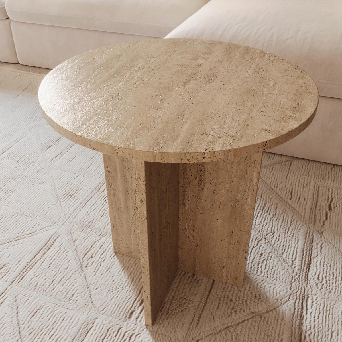 Chaque console est taillée dans un travertin massif, une pierre reconnue pour ses nuances chaleureuses, ses veinages subtils et ses petites cavités naturelles, qui en font une pièce unique et intemporelle.