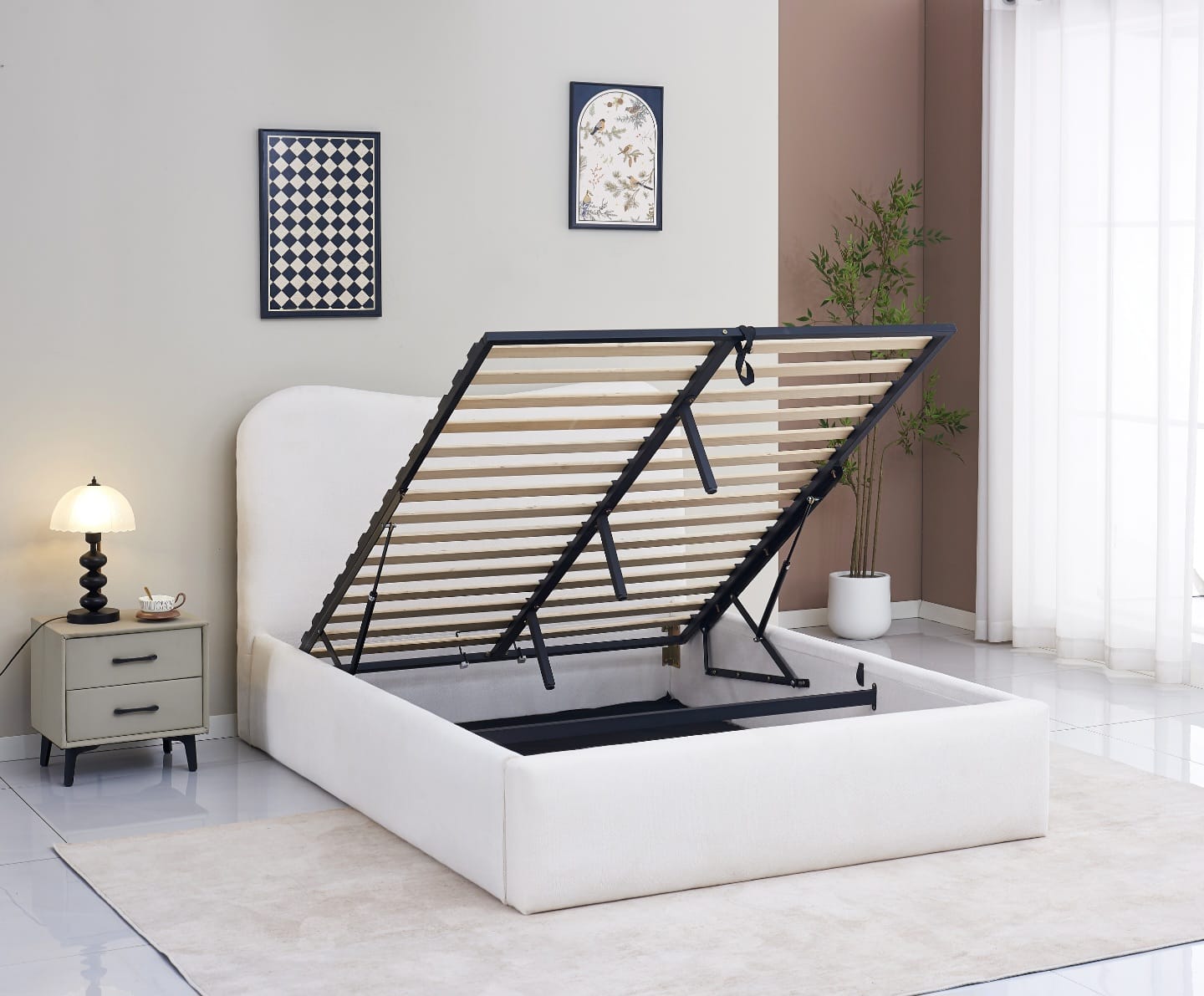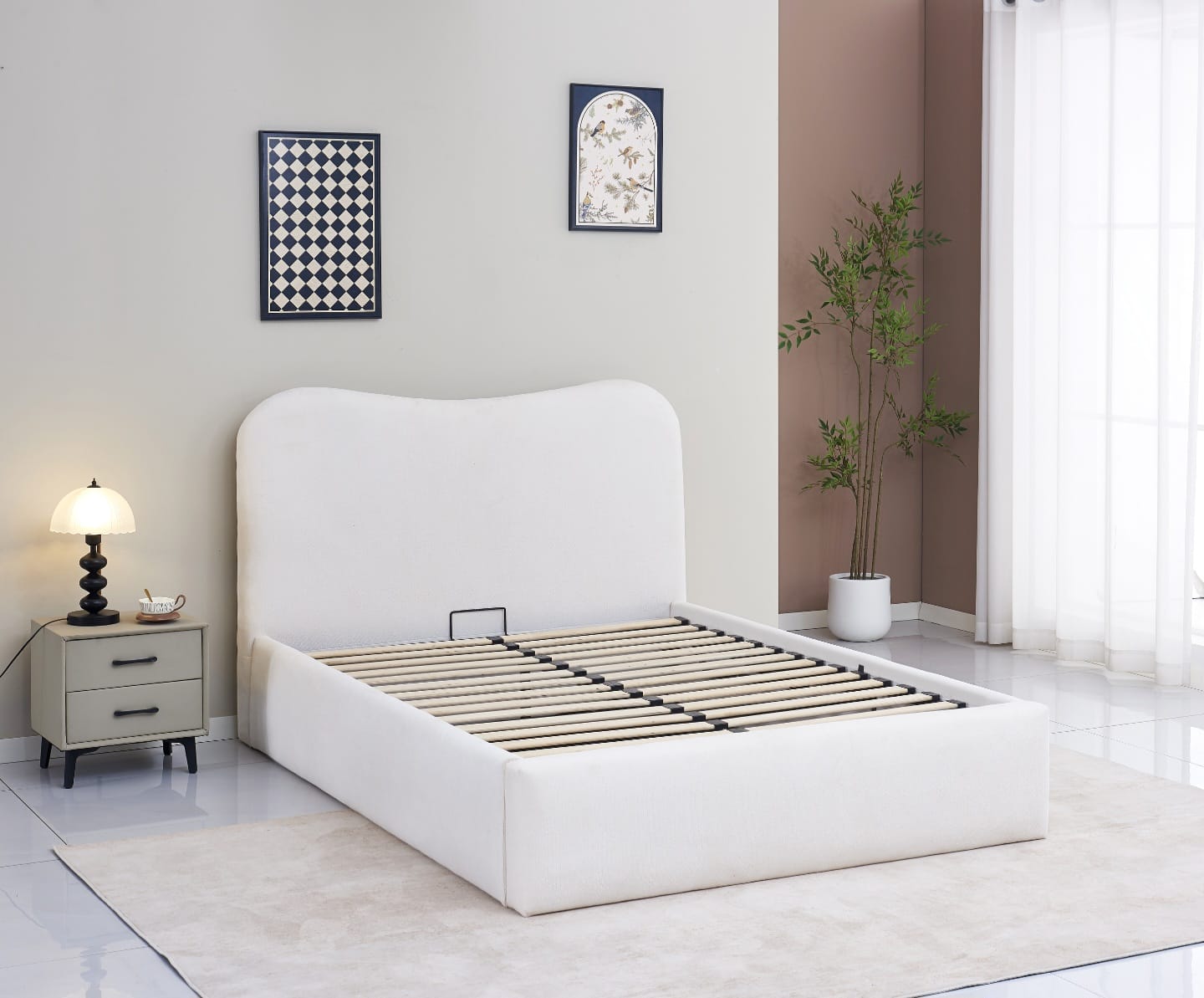 Plongez dans l'élégance du Lit Coffre Porto , une pièce au design doux et contemporain, sublimée par son revêtement en tissu beige. Ce lit allie à merveille esthétique épurée et fonctionnalité bien pensée, pour transformer votre chambre en un cocon chaleureux et raffiné.