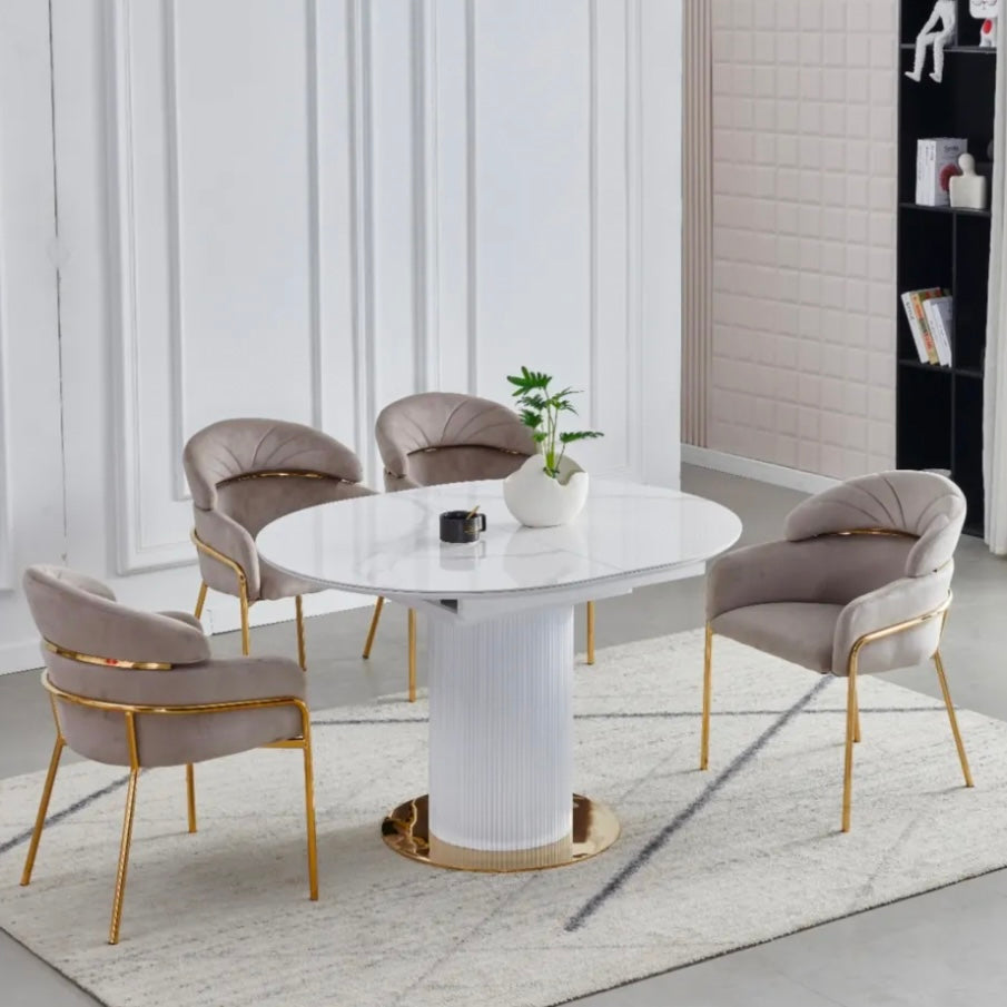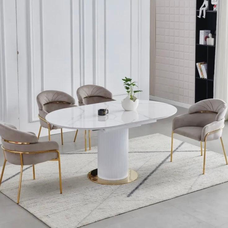 La Table à Manger Rallonge Sofia allie élégance et praticité, idéale pour les espaces contemporains. En position fermée, ses dimensions compactes (L: 124 cm, P: 90 cm, H: 75 cm) s'intègrent parfaitement dans votre salle à manger. Grâce à sa rallonge, elle s'étend à 164 cm de longueur, offrant un espace supplémentaire pour accueillir plus d'invités sans sacrifier le style.