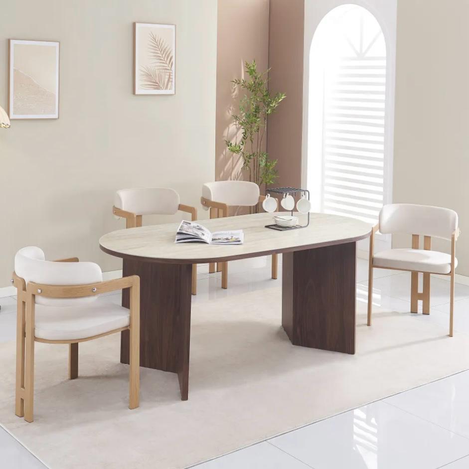 Disponible en MDF effet noyer ou effet travertin, cette table offre un rendu élégant et naturel. Sa surface facile à entretenir et sa structure solide la rendent idéale pour un usage quotidien. Avec des dimensions de 180 x 90 cm, elle peut accueillir confortablement 6 à 8 personnes, parfaite pour des repas en famille ou entre amis.